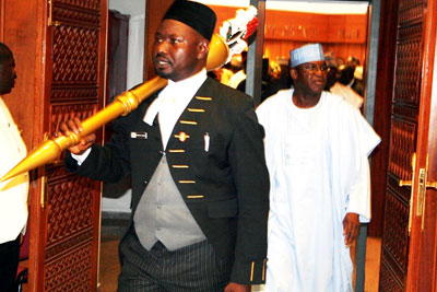 Speaker of the House Hon. Dimeji Bankole and others coming out of Chamber after their sitting on 03/05/2011—Photo: Gbemiga Olamikan