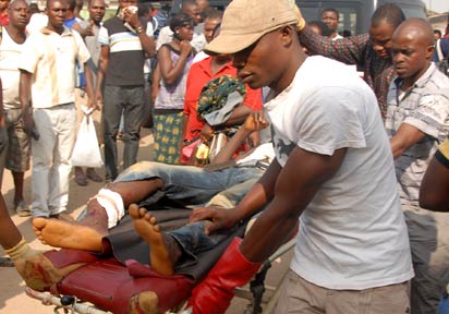 Helping the injured at Madalla, Suleja on Christmas Day.