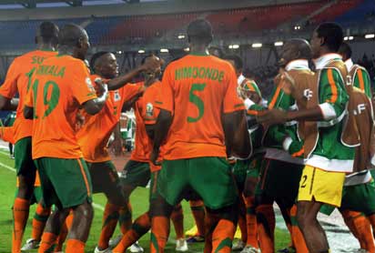 Zambia players celebrating their victory