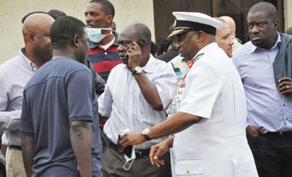 A Naval Officer, Joe Aikhomu, and others relation of the victims of DANA Air crashed at Iju-Ishaga, waiting for clarification at General Hospital Mortuary in Ikeja Lagos state, on 05/06/2012. Photo: Bunmi Azeez