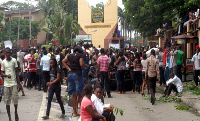The Chairman of the University Of Lagos, UNILAG branch of ASUU (Academic Staff Union of Universities), Dr Oghenekaro Ogbinaka, while addressing a gathering of protesting UNILAG students, assured them that the Union will fight against Jonathan’s decision to change the name of the tertiary institution to Moshood Abiola University. “I want to tell you that ASUU is by you, the entire University of Lagos is by you. We woke up peacefully and saw the man announce a stupid decision”, he said.