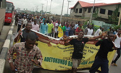 Democracy Day Gift for UNILAG student; A Peaceful protest by University of Lagos student , at Yaba Roundabout, over the re-naming the University of Lagos to Moshood Abiola University on Tuesday 29-5-2012, in Lagos. PHOTO; Kehinde Gbadamosi