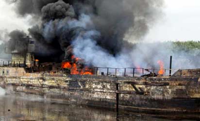 A vessel explosion at Abuloma Waterside in Port-Harcourt on Friday (20/7/12) NAN-PHOTO