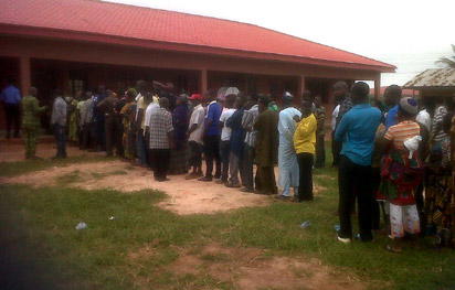 Voters accreditation at Arousa Primary School at Ehor, Edo state, Saturday.