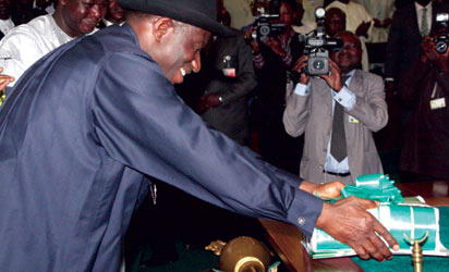 File photo: President Jonathan laying the Budget Proposal before the National Assembly members
