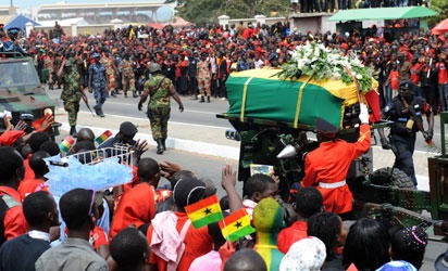 A News Agency of Nigeria (NAN) correspondent in Accra for the burial, reports that 16 Heads of State, five Vice Presidents and other high-powered international dignitaries attended the funeral and burial service of the late President at Accra stadium.