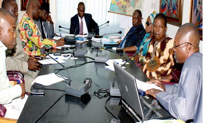 CONFERENCEE: Deputy Editor, Mr Eze Anaba, (centre), flanked by Senator Ewah Henshaw, (right), Chief Barbara James; Mr. Emeka Mamah, and Mr. Ene Tony-Ray. On the left is Mr. Hugo Odiogor, coordinator, Mr. Maurice Ekong and Mr. A. Inyang. Photo: Lamidi Bamidele