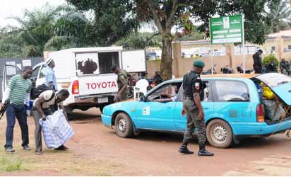 A BOMB EXPERT CHECKING A VEHICLE ON FRIDAY AT INEC OFFICE, AKURE, AHEAD OF SATURDAY’S GUBERNATORIAL ELECTION IN ONDO STATE ON FRIDAY (19/10/12).