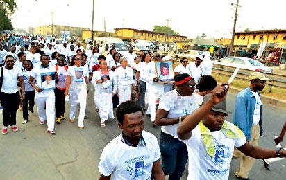 Eyes popped on the streets of Lagos as Segun Arinze coordinated the traffic. Onlookers waved at Charles Okafor. Cars stopped, not for traffic lights but to gaze at Joseph Benjamin. Celebrities walked the streets, because Enebeli Elebuwa now walks in the land of the dead. A bitter-sweet-celebration formed the candle light procession organised in honour of the departed veteran actor by the Actors Guild of Nigeria (AGN). The procession commenced from Masha bus stop, in Surulere and terminated at the National Stadium complex amid grief.