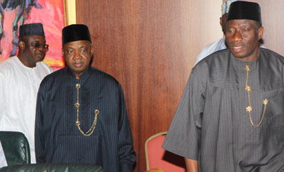 File photo: From left: Vice President Namadi Sambo, and President Goodluck Jonathan, at the Federal Executive Council Meeting in Abuja. NAN Photo