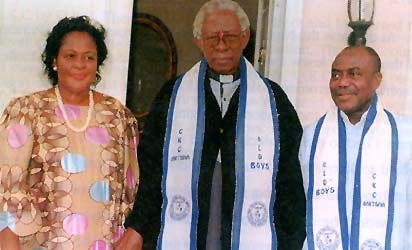 Rev. Fr. N. C. Tagbo, former principal of CKC Onitsha with Dr. and Mrs. Peter Odili