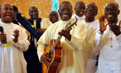 President Goodluck Jonathan (4th r) leading other fathers in the presentation of a special song during the 2013 Father’s Day celebration at the Aso Villa Chapel Abuja on Sunday (16/6/13).