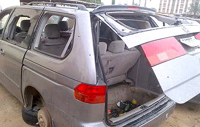 About an hour later, the operatives at Surulere, spotted a Toyota Odyssey matching the description of the car being used by the robbers at the National Stadium and they went after it, but on approaching the vehicle, the occupants opened fire on the police vehicle in a bid to escape and the police responded. The robbers ran further to Eko Bridge, where the operatives succeeded in meeting up with them and a gun battle ensured.
