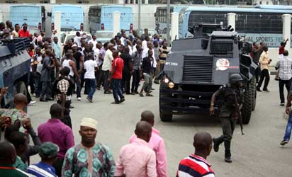 RIVERS—The police fire tear gas as rival lawmakers and their supporters clashed in Port-Harcourt yesterday. Photos: Chijioke Nwankpa.