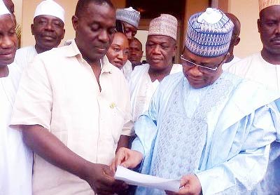 Vanguard’s Niger State Correspondent, Wole Mosadomi presenting an official birthday message from the management of Vanguard Newspapers to Gen. Ibrahim Babangida in Minna Friday.