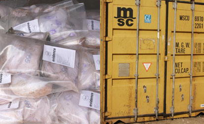 The drugs in evidence pouches and the container with 113.49kg heroin before search