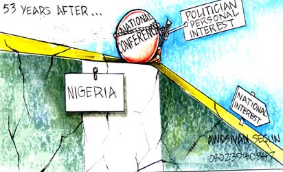 After decades of agitation for a sovereign national conference, President Goodluck Jonathan during his 53rd independence anniversary broadcast announced the setting up of the National Conference Advisory Committee  with Dr. Femi Okurounmu as  Chairman and Dr. Akilu Indabawa as Secretary.