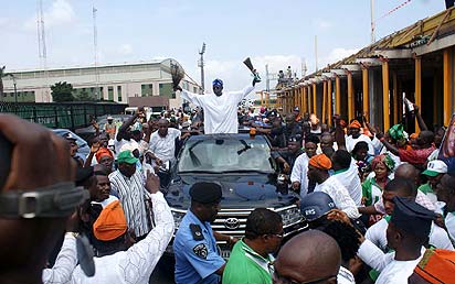 Hundreds of well wishers, including party leaders, members of the National Assembly from Lagos State, local government chairmen, friends, party members, market men and women, amidst tight security, thronged the Murtala Muhammed International Airport to receive him.