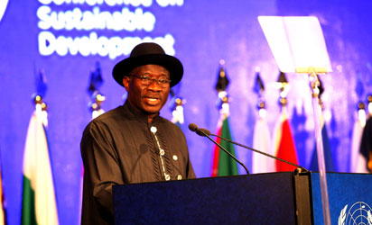 President Goodluck Jonathan addressing Rio+20 Earth Summit Thursday in Rio De Jenario, Brazil.