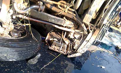 ACCIDENT: The truck that ran over students of Itori Comprehensive High School, reportedly killing 10 and injuring others, yesterday. PHOTO: Daud Olatunji.