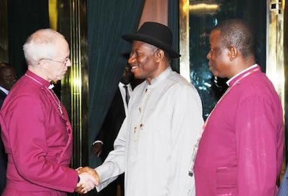 The last religious authority to visit Jonathan in solidarity with the government and people of Nigeria was the Archbishop of Canterbury, Rt. Rev. Justin Welby, who is the leader of the over 70 million Anglicans world wide.
