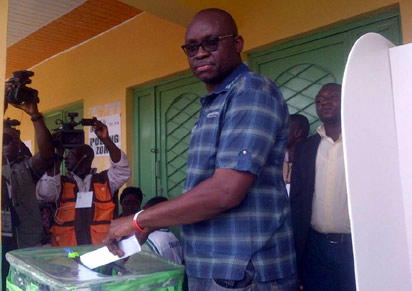 Ayo Fayose casting his vote yesterday…