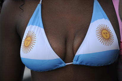 An Argentine supporter cheers for her team in Rio de Janeiro on June 11, 2014 on the eve of the opening match of the FIFA World Cup Brazil 2014. AFP PHOTO / TASSO MARCELO