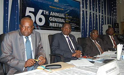 *AGM: From left; Dr. Clement Illoh, Permanent Secretary, Ministry of Labour and Productivity, Mr. Larry Ettah, 1st Vice President, NECA, Chief R.U. Uche, President, NECA and Director-General, Mr. Segun Osinowo , at the 56th NECA AGM, Lagos.