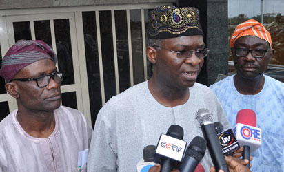 From left: Mr. Remi Ibirogba, Commissioner, Information and Strategy, Gov. Babatunde Fashola of Lagos and Mr. Lateef Raji, Special Adviser on Information and Strategy, during the Governor’s Press briefing on Ebola Virus, at Lagos House, Alausa, Ikeja, Lagos. Photo: Bunmi Azeez