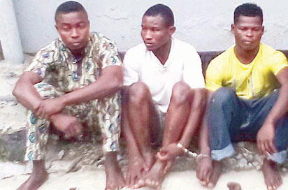 NABBED: From left— Adebayo Moses, Dosumu Sadiq and Ibikunle Samson, the robbery suspects. PHOTO: Esther Onyegbula.