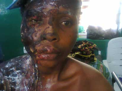 ALADI Sule lies critically ill at the Federal Medical Centre, Lokoja, Kogi State. Her body is wrapped in bandage, from the head to the chest. Part of her back and her right leg are socked in foil. One of her eyes has been “eaten” by acid and her right ear is rolled into a small ball. Aladi’s critical situation is no thanks to an alleged angry ex-lover who was said to have promised to destroy her beauty and fulfilled his promise.