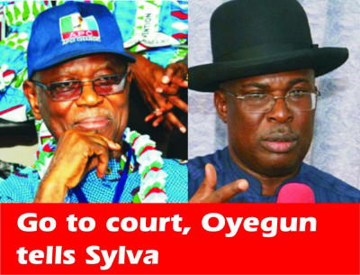 Chief John Odigie-Oyegun, the National Chairman, All Progressives Congress (APC), has told Chief Timipre Sylva, one of the contestants in Sept. 22 botched primary in Bayelsa to go to court.