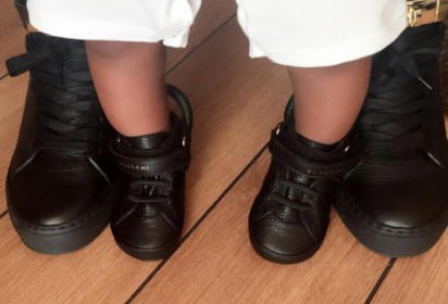 The reaction was triggered on the social media on Sunday when the talented artiste shared a photo of the baby boy and her husband, Tunji Balogun, a.k.a Tee-Billz on instagram as they rock the same pair of Buscemi sneakers.