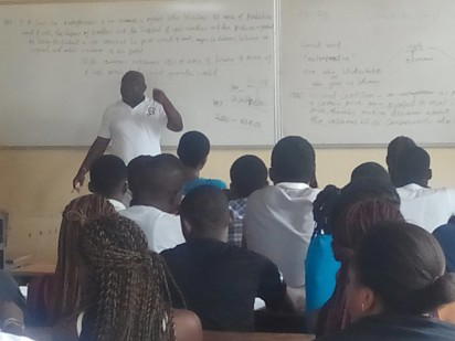 Chancellor, Gregory University, chief Gregory Ibe lecturing students at the institution.
