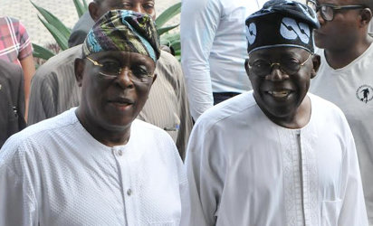 Former Ogun State Governor, Chief Olusegun Osoba with APC National Leader, Asiwaju Bola Tinubu at a meeting in Lagos on Sunday.