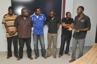 The suspects include Aminu Ado, A.K.A. Yusha’u Muhammed Yerima Adam; David Ali Michika; Umar Hamza; James Malu Akune; and Kazeem Kayode Usman.