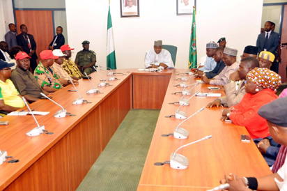 Speaker of the House of Representatives, Rt. Hon. Yakubu Dogara, Thursday evening, met with the Comrade Ayuba Wabba-led faction of the Nigerian Labour Congress, NLC, calling on the Labour leaders to suspend the strike against the President Muhammadu Buhari-led federal government’s hike in the pump price of petrol, which saw the essential commodity hiked from N86.50 to N145 per litre.
