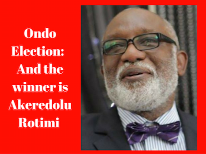 NAN reports that Akeredolu of the All Progressives Congress (APC) scored 244, 842 votes to emerge winner of the election, while Eyitayo Jegede of Peoples Democratic Party (PDP) came second with 150, 380 votes.