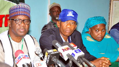 From Left;Prof AbdulGaniyu Ambali,Returing Officer INEC/Vice Chancellor University of Ilorin;Olusegun Agbaje,REC and Dr Aminat Zakari at the Result  Collation Centre at INEC Head office in Akure Ondo State.PHOTO;AKEEM SALAU