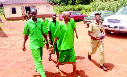 The five herdsmen arraigned at the Enugu State High Court sitting at Nsukka, Monday, over the death of farmers at Nimbo, Uzo Uwani Local Government Area of the state in April 2016. Photo: Emeka Mamah.
