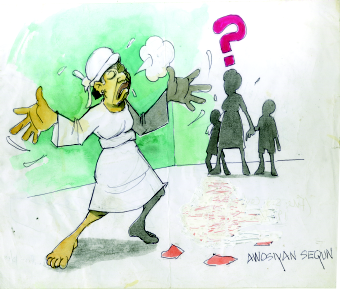 WEMI had just made a much needed dash to the toilet when she heard a huge crash. “Couldn’t I even have a wee in peace without those brats creating havoc?”, she muttered under, her breath. Hastily pulling up her skirt, she dashed out of the toilet to the sitting room, yelling ‘what’s going on?’ as she approached her two grandchildren. “Jnr. hit me,” hissed Kenke, nine; “and he’s broken your fancy flower vase.”
