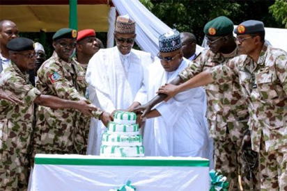 Buhari cutting the Nigerian anniversary cake in Maiduguri