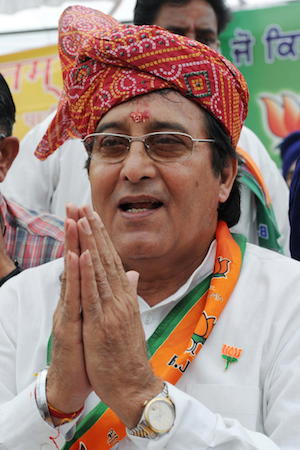 (FILES) This file photo taken on April 24, 2009 shows Indian film actor Vinod Khanna during an election campaign rally on the outskirts of Gurdaspur. Hindi screen icon Khanna has died after a years-long battle with cancer, Indian media reported on April 27, 2017. / AFP PHOTO