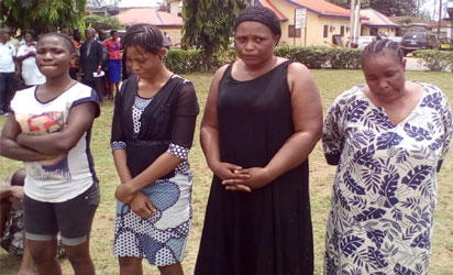 From left, Chiamaka Ukeje, Sandra Ezuka, Ruth Solomon and Joy Blessing, paraded at the Imo Police Headquarters, yesterday. Photo: Chinonso Alozie.