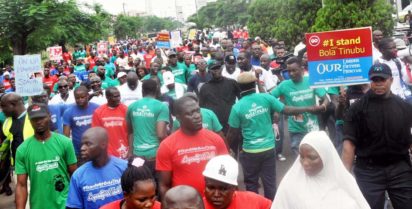 Pix: Youths and Members of i stand with Bola Tinubu Group, during the i stand with Bola Tinubu Loyalty Walk in Support of Asiwaju Bola Ahmed Tinubu, National Leader of All Progressive Congress[APC] in Lagos. Yesterday. Photo: Bunmi Azeez