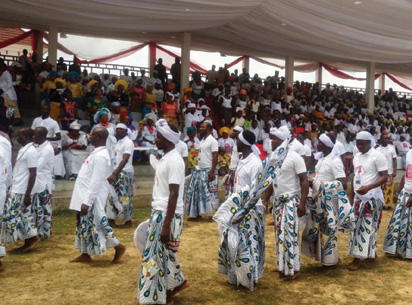 Some escorts of the Amasiekumor masquerade arrive the arena of the festival.