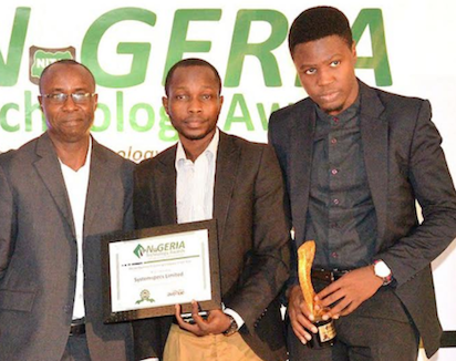 CEO, Peace Consult Ltd, Mr. Ufot E. Ufot presenting the Best Online Payment Processing Company of the Year award to Social Media Executive, SystemSpecs, Adewale Adetana and Brand/Events Executive, Systemspecs Damilola Ogundipe,during the 2nd edition of the Nigeria Technology Award ceremony in Lagos recently