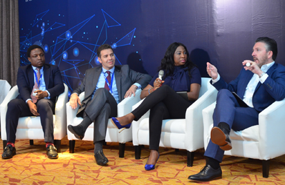Caps: L-R Director, Digital Advisory Team, Ernst & Young, West Africa, Dapo Adewole; Associate Director, Biware Consulting, Walid Kaâbachi; Head, Card Business,FirstBank Nigeria, Folasade Femi-Lawaland Senior Industry Consultant, Global Banking Practice, SAS, Alex Kwiatkowski during a panel discussion at the SAS Road to Digital Transformation and Artificial Intelligence Workshop in Lagos.