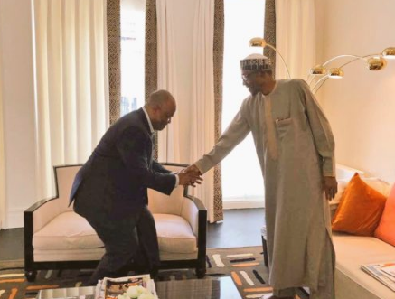 Senator Godswill Akpabio with President Buhari in London on Sunday