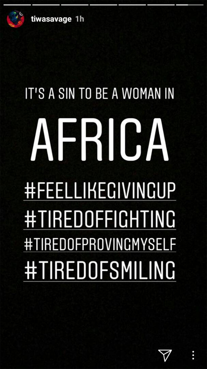 Aaward wining singer and Mavin Queen, Tiwa Savage has said it’s a sin to be a woman in Africa